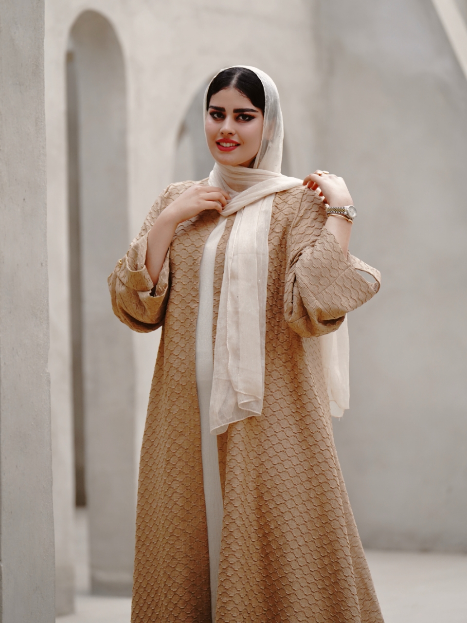 مشخصات عبا فاخر بمب رنگ کرمی: